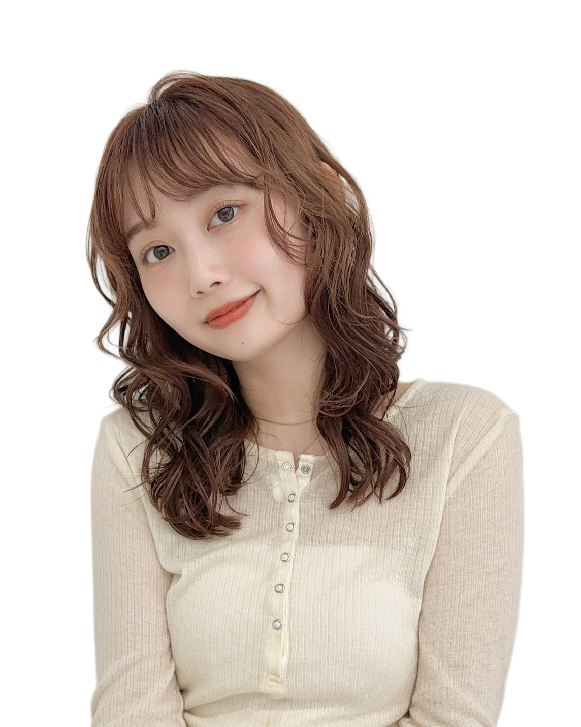 冬のお洋服は首元にボリュームが出やすいので、軽さのあるミディアムレイヤーが相性抜群。 顔まわりに入れたレイヤーが自然に動いて、小顔効果も◎ マフラーやコートを着ても“重たく見えない”のが人気の理由です。毛先は軽いワンカールでも可愛いし、ストレートで艶を出せば上品な雰囲気に。 “冬だけ少しイメチェンしたい”という方にもおすすめの万能スタイルです。